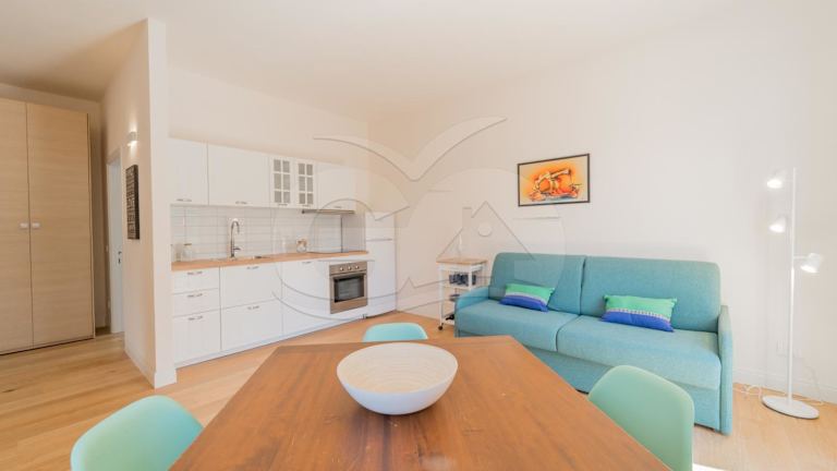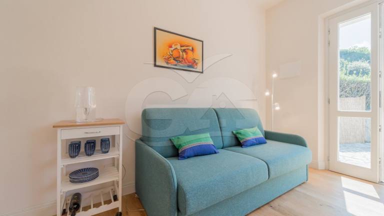Die Ferienwohnung umfasst ein separates Schlafzimmer, ein Wohnzimmer sowie eine voll ausgestattete Küche und ein Badezimmer.