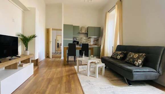 Die Ferienwohnung besteht aus einem Schlafzimmer und einem Wohnzimmer. Sie verfügt über eine voll ausgestattete Küche, die mit einem Kühlschrank und einer Kaffeemaschine ausgestattet ist. Des Weiteren enthält das Bad ein Bidet sowie eine Dusche. Handtücher und Bettwäsche werden bereitgestellt.
