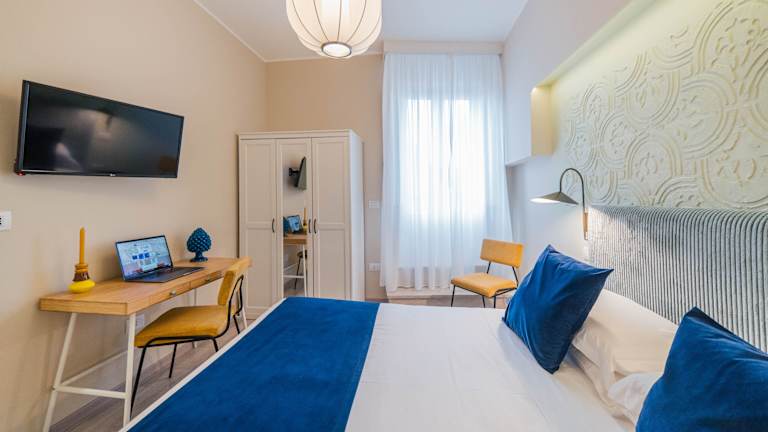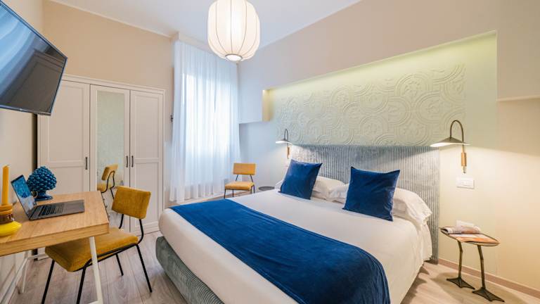 Die klimatisierten Zimmer sind ausgestattet mit einem Schreibtisch, Wasserkocher, Minibar, Safe, Flachbild-TV und eigenem Badezimmer, das ein Bidet umfasst. Zur Zimmerausstattung gehören weiterhin Bettwäsche und Handtücher. Allergikerfreundliche Zimmer sind ebenfalls verfügbar.