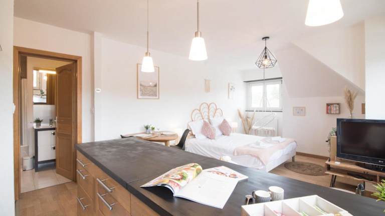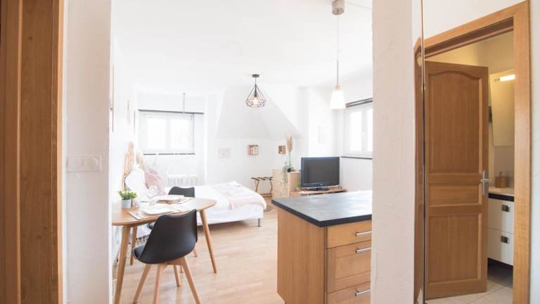 Das Apartment im A découvrir - Le Bohème ist komfortabel eingerichtet und verfügt über Annehmlichkeiten wie kostenfreies WLAN, Sat-TV und eine Waschmaschine. Die Küche ist mit einem Kühlschrank und einem Backofen ausgestattet, so dass Sie Ihre eigenen Mahlzeiten zubereiten können.