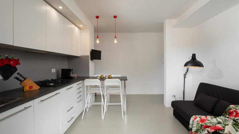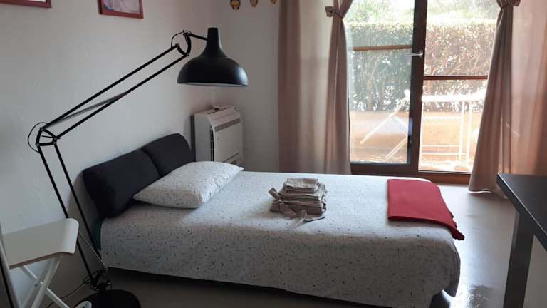 Die Ferienwohnung verfügt über 1 Schlafzimmer, ein Wohnzimmer und eine voll ausgestattete Küche mit Kühlschrank und Kaffeemaschine. Das Badezimmer ist mit einem Bidet und einer Dusche ausgestattet. Handtücher und Bettwäsche werden bereitgestellt, und die Unterkunft ist klimatisiert.
