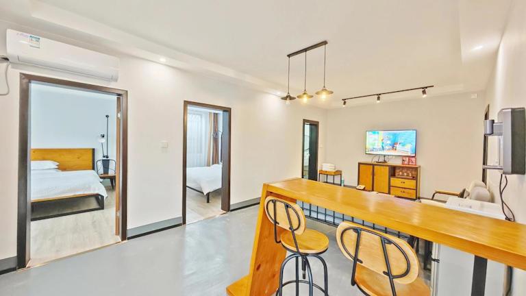 Das A&G Apartment in Zhangjiajie bietet Ihnen einen komfortablen Aufenthalt mit herrlichem Bergblick und kostenfreiem WLAN. Die klimatisierten Unterkünfte sind mit modernen Annehmlichkeiten ausgestattet und verfügen über eine Terrasse, einen Flachbild-TV und ein eigenes Badezimmer. Sie können auch die Gemeinschaftslounge nutzen und in der Umgebung wandern. Die Lage des Apartments ermöglicht es Ihnen, die Naturschönheiten von Zhangjiajie wie den Nationalpark Zhangjiajie und Yuanjiajie zu erkunden. Der nächstgelegene Flughafen ist der internationale Flughafen Zhangjiajie Hehua, der etwa 37 km entfernt liegt.