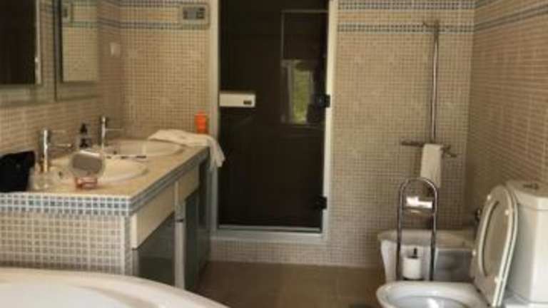 Das Ferienhaus bietet Platz in zwei Schlafzimmern und einem Wohnzimmer. Es ist mit einer voll ausgestatteten Küche inklusive Kühlschrank und Kaffeemaschine versehen und verfügt über vier Badezimmer mit Bidet und Dusche. Handtücher und Bettwäsche werden bereitgestellt.