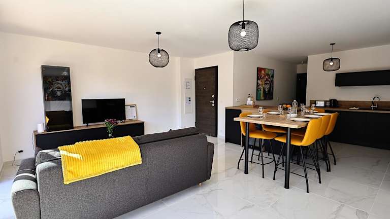 A Serenita - Magnifique appt T4 sur Bonifacio ist eine Wohnung, die Übernachtungsmöglichkeiten mit kostenlosem WLAN und Klimaanlage bereitstellt. Sie verfügt über einen Garten und einen kostenlosen Privatparkplatz. Es handelt sich um eine Ferienwohnung, die von einem privaten Gastgeber geführt wird und ein Mindestalter von 18 Jahren für den Check-in verlangt. Junggesellenabschiede sind nicht gestattet.