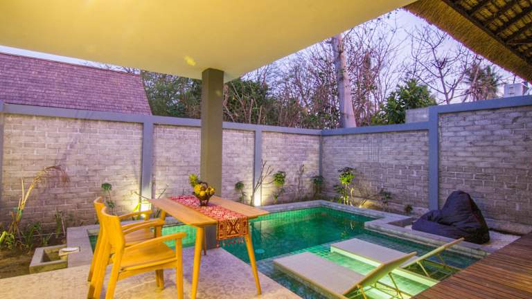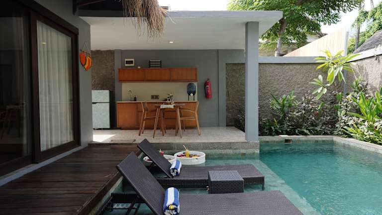 Die A Villa Gili Air ist eine wunderbare Unterkunft auf der Insel Gili Air, nur 500 m vom Strand entfernt. Sie bietet ihren Gästen zahlreiche Annehmlichkeiten wie kostenlose Leihfahrräder, kostenloses WLAN und einen Zimmerservice. Mit einem eigenen Pool, einem Garten und einem kostenfreien Privatparkplatz bietet die Villa alles, was Sie für einen erholsamen und komfortablen Aufenthalt benötigen. Genießen Sie das Frühstück, schwimmen Sie im Innenpool und erkunden Sie die Umgebung mit dem Fahrrad. Der Hafen Bangsal und der Hafen Teluk Kodek sind ebenfalls leicht zu erreichen. Der internationale Flughafen Lombok ist nur 61 km entfernt und bietet einen kostenpflichtigen Flughafentransferservice.