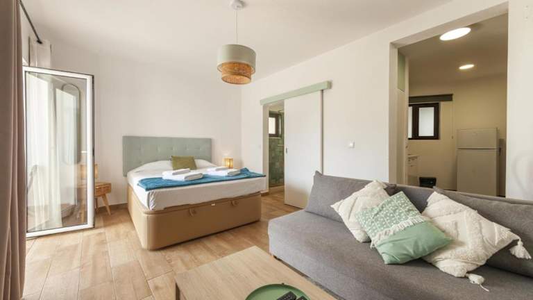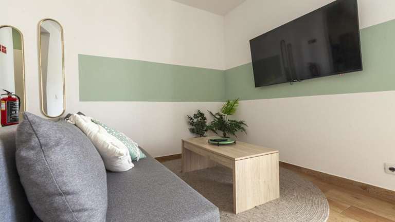Die Ferienwohnung bietet ein Schlafzimmer, ein Badezimmer, Bettwäsche, Handtücher, einen Flachbild-TV, einen Essbereich und eine voll ausgestattete Küchenzeile.