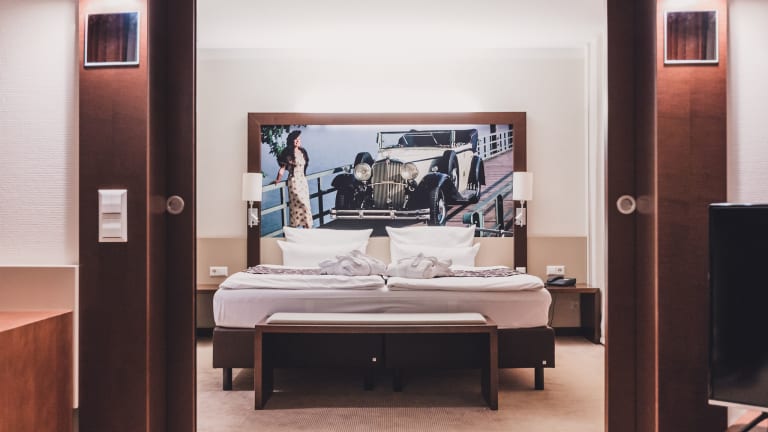 Unsere insgesamt 213 Zimmer und Suiten überzeugen durch ihre komfortable Größe ab 24 - 50 m² und ihr zeitgemäßes Design. Sie verbinden eine angenehme Atmosphäre mit einem ganz besonderen Interieur Konzept. Denn jedes unserer Zimmer erzählt ein Stück Automobilgeschichte. So erleben Sie bei jedem Besuch einzigartige Eindrücke und Einblicke in die faszinierende Welt des Automobils. Unsere 5 verschiedenen Zimmerkategorien sind ausgestattet mit Badewanne oder Dusche, WC, Fön, Telefon, LCD-Flachbild-TV/Radio, kleinem Kühlschrank, Wasserkocher mit gratis Tee- & Kaffeeauswahl, Klimaanlage, Schreibtisch, Einbausafe und WLAN. Mit einer Gesamtgröße ab 24 - 50 m² bieten Ihnen unsere Zimmer viel Platz für einen erholsamen Aufenthalt.