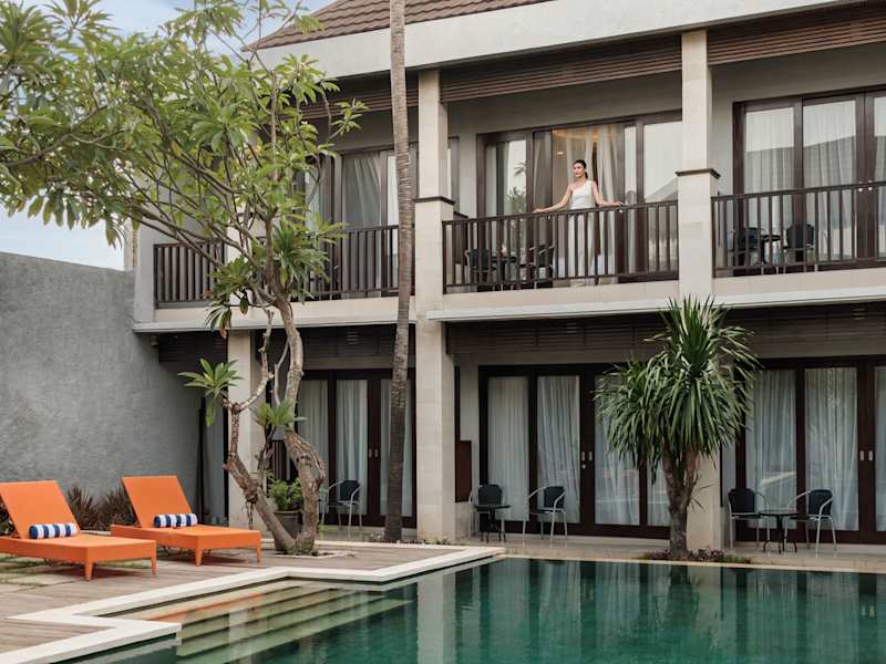 Die modernen Zimmer im ABISHA Hotel Sanur bieten einen Balkon mit Poolblick. Zur Ausstattung gehören eine Minibar, Kaffee- und Teezubehör sowie ein Flachbild-Kabel-TV. Ein Safe ist ebenfalls vorhanden.