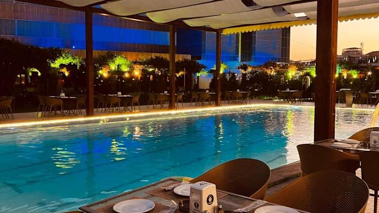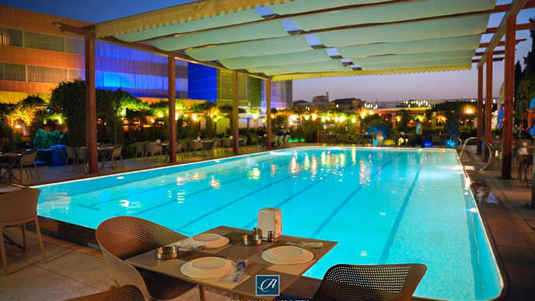 Das Hotel bietet ein Restaurant, das amerikanische, italienische und mediterrane Küche serviert. Gäste können ein kontinentales Frühstück genießen. Auf Anfrage sind auch spezielle Ernährungsbedürfnisse wie vegetarische, milchfreie und halal-zubereitete Optionen möglich.