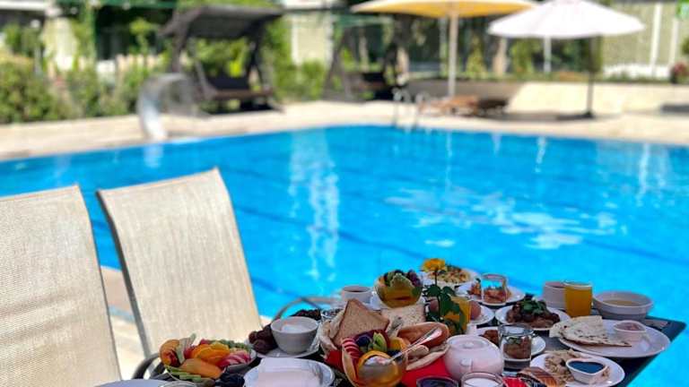 Abu Sanaa Hotel ist ein modernes Hotel mit kostenlosem WLAN und einem vielfältigen Angebot an Annehmlichkeiten, darunter ein saisonaler Außenpool, Sauna, Whirlpool, Garten und eine Bar mit Stadtblick. Das Hotel bietet einen Kinderclub und einen Zimmerservice und ist auf Familienfreundlichkeit ausgelegt. Die Rezeption ist rund um die Uhr besetzt und die Mitarbeiter sprechen Arabisch und Englisch.