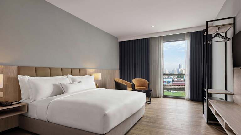 Die Zimmer sind mit einer Klimaanlage, einem Flachbildfernseher mit Satellitenkanälen und einem eigenen Badezimmer ausgestattet, in dem Duschmöglichkeiten und kostenfreie Toilettenartikel bereitgestellt werden. Zur Standardausstattung der Zimmer gehören ein Schreibtisch, ein Safe, eine Tee-/Kaffeemaschine sowie ein Bügelset. Zudem gibt es rollstuhlgerechte Zimmer mit barrierefreien Badezimmern. Familien- und Nichtraucherzimmer stehen ebenfalls zur Verfügung.