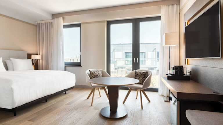 Die klimatisierten Zimmer sind mit einer Minibar, einer Kaffeemaschine und einem Badezimmer mit Dusche ausgestattet. Einige Zimmer verfügen über eine Badewanne und eine Terrasse mit Stadtblick. Ein Safe, ein Bügeleisen/-brett und kostenfreies Wasser sind ebenfalls vorhanden. Die Zimmer bieten zudem eine Klimaanlage und Ausstattung wie Sat-TV, Radio und kostenfreies WLAN. Rollstuhlgerechte Zimmer mit speziellen Badezimmern sind verfügbar.