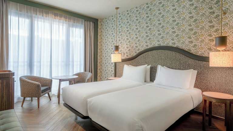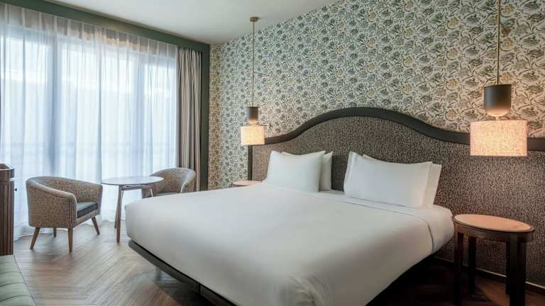 Die Zimmer sind mit individuell regulierbarer Klimaanlage und Heizung ausgestattet. Jede Unterkunft verfügt über ein Doppelbett oder Kingsize-Bett, Zustellbetten können angefordert werden. Zur Ausstattung gehören ein Safe, eine Minibar, ein Schreibtisch, eine Tee-/Kaffeemaschine, ein Telefon mit Direktwahl, ein TV-Gerät mit Satelliten-/Kabelempfang, ein Radio und kostenfreies WiFi. Die Badezimmer sind mit einer Dusche und Badewanne, einem Haartrockner, Bademänteln sowie Kosmetikartikeln ausgestattet. Es sind auch rollstuhlgerechte Zimmer verfügbar.