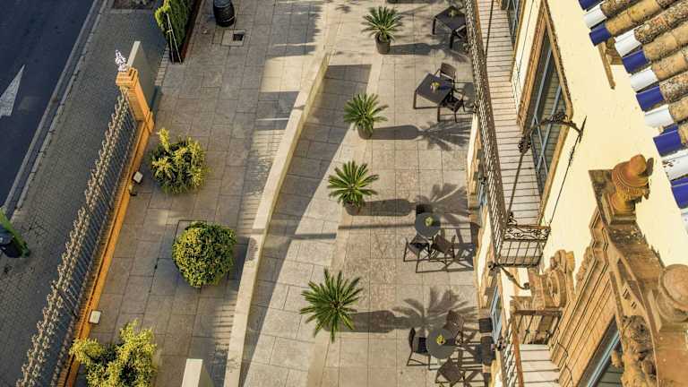 Das Hotel befindet sich im Villen- und Geschäftsviertel 'Avenida de la Palmera', in der Nähe des 'Parque María Luisa' und des 'Plaza de España'. Das Stadtzentrum mit zahlreichen Einkaufs- und Unterhaltungsmöglichkeiten sowie dem Giralda-Turm ist etwa 2 km entfernt. Der Flughafen Sevilla liegt in ca. 10 km Entfernung. Öffentliche Verkehrsmittel sind etwa 50 m vom Hotel entfernt.