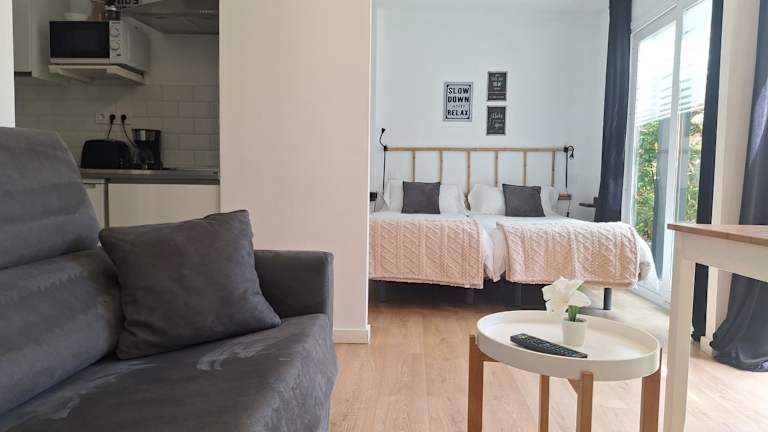 Die klimatisierten Apartments im Acero y Piedra Apartamentos con jardín privado bieten ihren Gästen einen komfortablen Aufenthalt. Jedes Apartment verfügt über eine Terrasse mit Gartenblick, einen gemütlichen Sitzbereich und einen Flachbild-TV. Die voll ausgestattete Küche bietet alles, was man für die Zubereitung von Mahlzeiten benötigt, einschließlich Kühlschrank, Mikrowelle, Kochfeld, Toaster und Kaffeemaschine. Das private Badezimmer ist mit einer Dusche und kostenlosen Pflegeprodukten ausgestattet.
