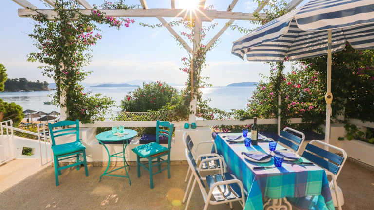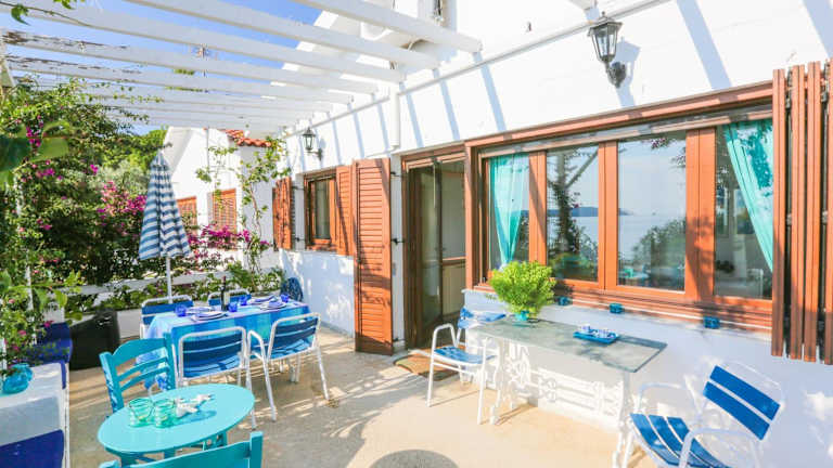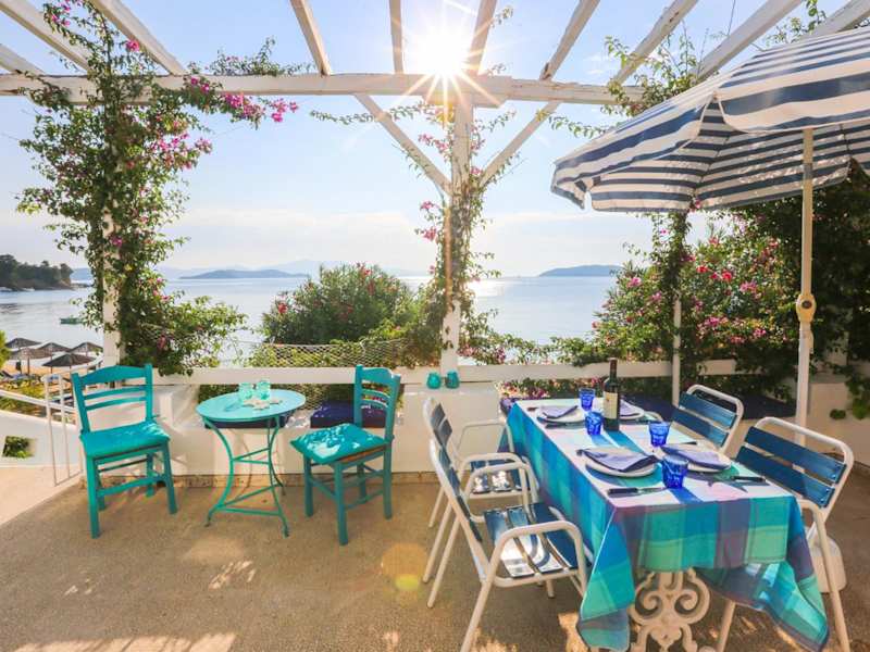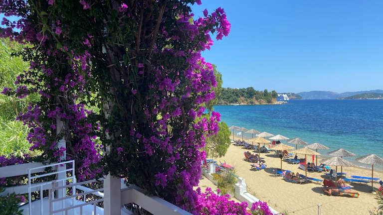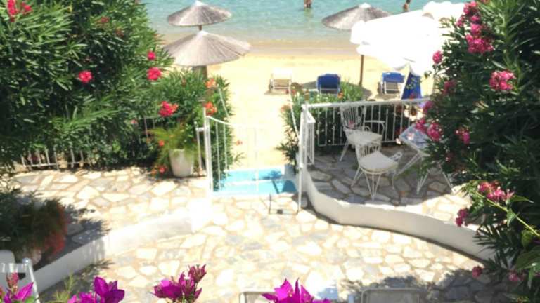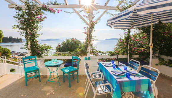 The Achladies Apartments are fully furnished,one or two, bedroomed studios located in Achladies Bay on the island of Skiathos in Greece. Surrounded by gardens most rooms have an astonishing view of the sea. In our gardens you will find a barbecue area available both day and night. There is a closed in sun patio and a private shaded patio with sea view under the trees.