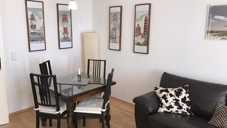 Die Ferienwohnung ist mit einem Schlafzimmer ausgestattet und verfügt über Kabel-TV, einen Essbereich, eine Küche mit einem Kühlschrank sowie ein Wohnzimmer.