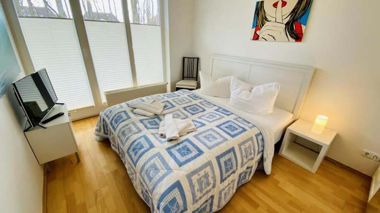 Die Unterkunft befindet sich in Warnemünde, nur 70 m vom Strand entfernt. Weitere nahegelegene Strände sind der Strand Hohe Düne, der 2,8 km entfernt ist, sowie kulturelle Einrichtungen wie das Schiffbau- und Schifffahrtsmuseum in einer Entfernung von 8,2 km. Zudem ist die Neue Messe Rostock 8,9 km entfernt, und der Hafen Rostock ist 11 km entfernt. Der nächstgelegene Flughafen ist der Flughafen Rostock-Laage, 49 km von der Unterkunft entfernt.