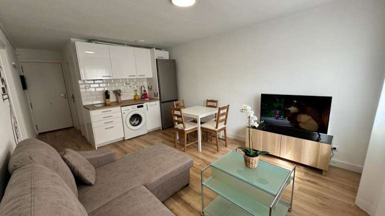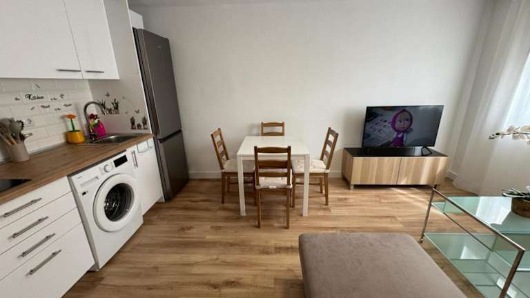 Die Ferienwohnung umfasst ein Schlafzimmer, ein Wohnzimmer und eine voll ausgestattete Küche mit Kühlschrank und Kaffeemaschine. Das Badezimmer ist mit einer Dusche und einem Haartrockner ausgestattet. Handtücher und Bettwäsche werden bereitgestellt. In der Unterkunft sind keine Haustiere erlaubt.