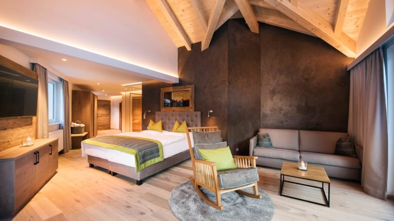 In großzügigen Zimmern und Suiten, die sich allesamt durch viel Komfort, Gemütlichkeit und Exklusivität auszeichnen, findet der Gast wieder zu sich selbst und bekommt endlich mehr Platz zum Durchatmen und Wohlfühlen. In allen unseren fünf Zimmertypen finden Sie eine Wellnesstasche mit kuscheligem Bademantel vor. Im Sommer steht Ihnen ebenso ein Wanderrucksack für die Dauer Ihres Aufenthaltes zur Verfügung. All unsere Zimmer sind mit Holzboden ausgestattet und Nichtraucherzimmer. Standardzimmer Zwölfer ohne Balkon ca. 18 m² für 1-2 Personen, geeignet für Alleinreisende, Jugendliche oder als zusätzliches Zimmer für Kinder, mit Mansarde, kleiner Sitzecke, Dusche und WC, Kosmetikspiegel, Fön, Telefon, Radio, Sat-TV, WLAN, Zimmersafe Standardzimmer Zwölfer mit Balkon ca. 33m² für 2-4 Personen, mit oder ohne Mansarde, ausgestattet mit Holzboden, Bad oder Dusche und getrenntem WC, Sitzecke, Kosmetikspiegel, Fön, Telefon, Radio, Sat-TV, WLAN, Zimmersafe, Balkon Superiorzimmer Zwölfer ca. 45m² für 2-4 Personen, ausgestattet mit Holzboden, Bad und Dusche und getrenntem WC, gemütlicher Sitzecke, Kosmetikspiegel, Fön, Telefon, Radio, Sat-TV, WLAN, Zimmersafe, Sonnenbalkon Junior Suite Zwölfer ca. 60m² für 2-5 Personen, bestehend aus 2 Schlafzimmern, ausgestattet mit Holzboden, Bad oder Dusche und getrenntem WC, Kosmetikspiegel, Fön, Telefon, Radio, Sat-Tv, DSL-Anschluss und gratis Wlan, Zimmersafe, Sitzecke und Balkon Bergsuite Zwölfer - unsere neuen Suiten ca. 55 m² für 2-4 Personen, Erlebnisdusche, freistehender Badewanne, getrenntes WC, gemütlicher Sitzecke mit Kuschelschlafsofa, Kamin und Schaukelstuhl, 2x Sonnenbalkon mit Gletscherblick, Beleuchteter Kosmetikspiegel, Fön, Telefon, Radio (auch im Badezimmer), Sat-TV, WLAN, Zimmersafe