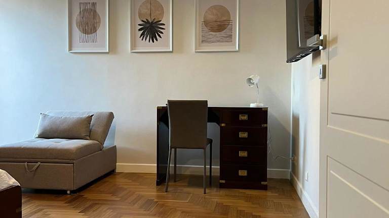 Die Ferienwohnung ist klimatisiert und verfügt über ein Badezimmer mit Bidet, Dusche und kostenlosen Pflegeprodukten. Die Küche ist ausgestattet mit einem Kühlschrank, Geschirrspüler, Mikrowelle, Kaffeemaschine und Wasserkocher. Zu den Annehmlichkeiten gehören Nichtraucherzimmer, Internetzugang sowie die Bereitstellung von Bettwäsche und Handtüchern, die nach den Richtlinien der örtlichen Behörden gewaschen werden.