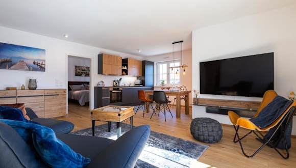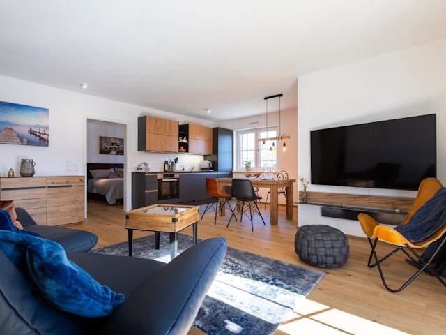 Die Ferienwohnung umfasst 2 Schlafzimmer, ein Wohnzimmer, ein Flachbild-TV, eine gut ausgestattete Küche mit Geschirrspüler und Herdplatte sowie 2 Badezimmer mit Dusche. Des Weiteren bietet die Suite einen Balkon mit Bergblick und eine Terrasse. Handtücher und Bettwäsche werden bereitgestellt.