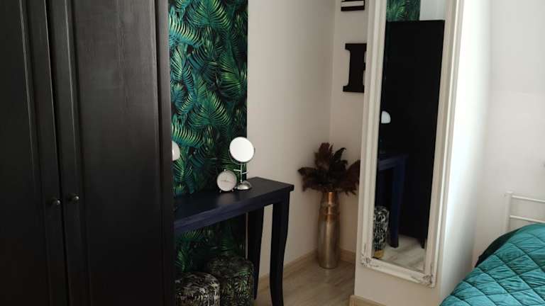Die Wohnung besteht aus einem Schlafzimmer, einem Wohnzimmer und einem Badezimmer, das mit einer Dusche und einem Haartrockner ausgestattet ist.