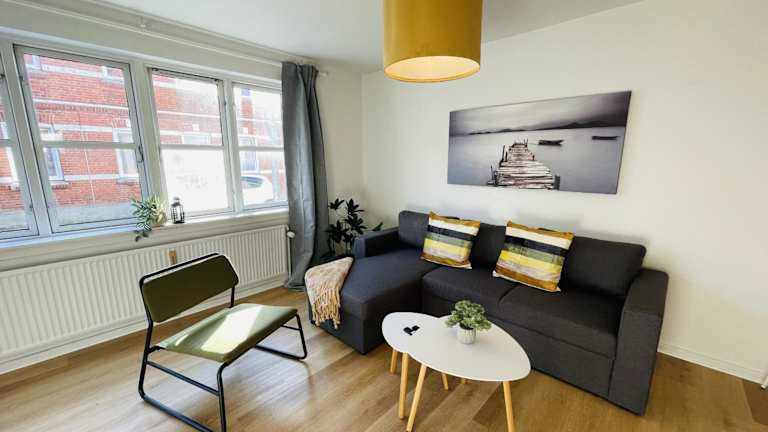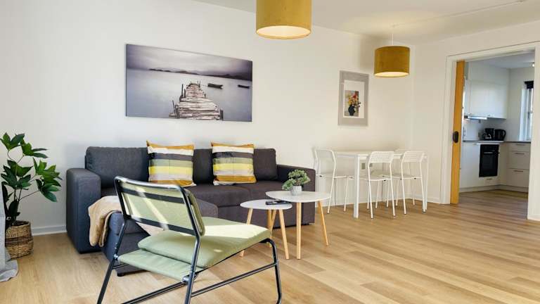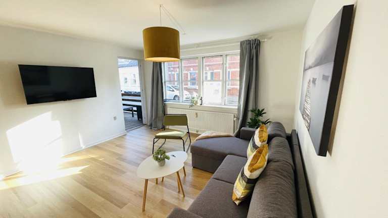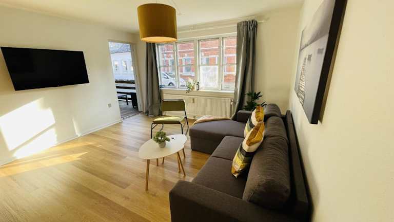 aday - Central Terrace Apartment in Hjorring ist eine moderne Ferienwohnung, die in einem Gebäude aus dem Jahr 1984 untergebracht ist. Sie bietet komfortable Übernachtungsmöglichkeiten sowie Annehmlichkeiten wie eine Terrasse und Grillmöglichkeiten. Kostenloses WLAN ist ebenfalls verfügbar.