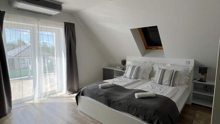 Das ADELINA Apartman liegt in Nyirád, etwa 14 km von der beeindruckenden Burg Sümeg entfernt. Die Umgebung bietet eine malerische Landschaft mit herrlichem Bergblick. In der Nähe des Ferienhauses finden Sie zudem den Thermalsee Hévíz, der nur 39 km entfernt ist, sowie eine Tropfsteinhöhle, die Sie nach einer kurzen Fahrt von 16 km erreichen können. Der Flughafen Balaton ist mit einer Entfernung von 51 km gut erreichbar.