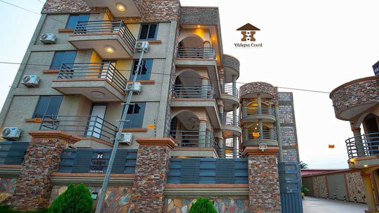 Das Adepa Court Luxury Apartment Services bietet luxuriöse Apartments mit einer Vielzahl von Annehmlichkeiten und einer günstigen Lage in Kumasi. Genießen Sie den Komfort klimatisierter Unterkünfte mit Balkon und kostenfreiem WLAN. Die gut ausgestattete Küche ermöglicht es Ihnen, Ihre eigenen Mahlzeiten zuzubereiten, und das eigene Bad bietet Komfort und kostenlose Pflegeprodukte. Die Gemeinschaftslounge lädt zum Entspannen ein und die Nähe zu Sehenswürdigkeiten wie dem Stadion Baba Yara und dem Manhyia Palace machen dieses Apartment zu einer idealen Wahl für Reisende.