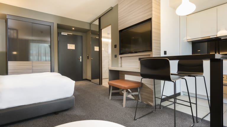 Die Studio-Apartments sind ca. 29 - 36 m² groß und verfügen über einen kombinierten Wohn-/Schlafraum, voll ausgestattete Küchenzeile mit Herd, Ofen, Kühlschrank, Geschirr, Besteck, großzügigem Wohn- und Essbereich, Bad mit Dusche und Waschtrockner, TV mit Apple Airplay und Miracast Mirroring System, Laptop Safe, Bügelbrett und -eisen, Klimaanlage und Schreibtisch. Die 1-Bedroom-Apartments sind ca. 36 - 40 m² groß und verfügen über 1 separates Schlafzimmer, voll ausgestattete Küchenzeile mit Herd, Ofen, Kühlschrank, Geschirr, Besteck, großzügigem Wohn- und Essbereich, Bad mit Dusche und Waschtrockner, TV mit Apple Airplay und Miracast Mirroring System, Laptop Safe, Bügelbrett und -eisen, Klimaanlage und Schreibtisch. Die 2-Bedroom-Apartments sind ca. 60 m² groß und verfügen über 2 separates Schlafzimmer, voll ausgestattete Küchenzeile mit Herd, Ofen, Kühlschrank, Geschirr, Besteck, großzügigem Wohn- und Essbereich,zwei großzügige Bäder mit Dusche und Waschtrockner, TV mit Apple Airplay und Miracast Mirroring System, Laptop Safe, Bügelbrett und -eisen, Klimaanlage und Schreibtisch.
