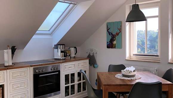 Genießen Sie den atemberaubenden Bergblick und entspannen Sie auf dem Balkon des Adlerhorst. Dieses Apartment bietet Ihnen eine komfortable Unterkunft mit allen Annehmlichkeiten, die Sie für einen angenehmen Aufenthalt benötigen. Die Lage in der Nähe der Festung Königstein und des Nationalparks Sächsische Schweiz macht es zu einem idealen Ausgangspunkt für Wanderungen und Radtouren.