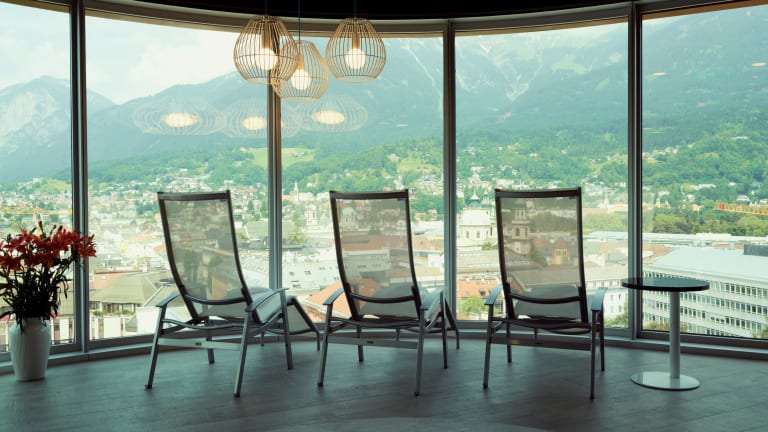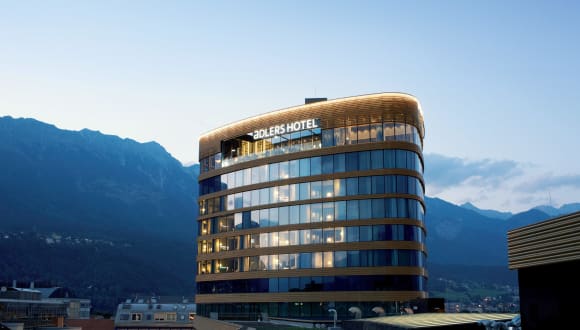 Das aDLERS Hotel Innsbruck ist ein besonderes Design-Hotel. Der urban-alpine Einrichtungsstil verbindet das Innsbrucker City Feeling mit der Tiroler Bergwelt. Alle Zimmer und Räumlichkeiten bieten einen einzigartigen, unverbauten Ausblick auf die Stadt und die Natur. Der Wellnessbereich im 11. Stock "Mountain View Spa" verfügt über Sauna, Dampfbad, Infrarotkabine, Duschen und Ruhebereich und ist für Hotelgäste kostenfrei nutzbar. Massagen werden angeboten (kostenpflichtig). Restaurant, Bar & Terrasse im 12. Stock versprechen internationale Küche und ein Wochenprogramm der Extraklasse: internationale Top DJ am Wochenende, ein sonntäglicher Brunch, tägliches Frühstück bis 11.00 Uhr und weitere tolle Events das ganze Jahr.