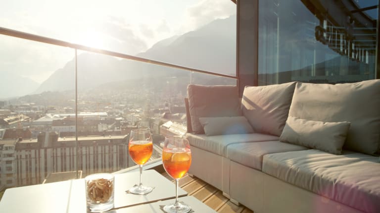 Restaurant, Bar und Terrasse befinden sich im 12. Stock mit grandiosem Ausblick auf Innsbruck und die umliegende Bergwelt. Weiters gibt es eine Roof Top Bar im 13. Stock die zu bestimmten Zeiten im Sommer geöffnet hat.