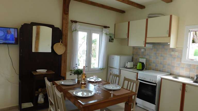 Das Ferienhaus verfügt über eine Klimaanlage und bietet Platz in zwei Schlafzimmern. Es ist mit einem Kabel Flachbild-TV sowie einer Küche ausgestattet, die einen Kühlschrank und einen Ofen umfasst. Handtücher und Bettwäsche werden bereitgestellt.