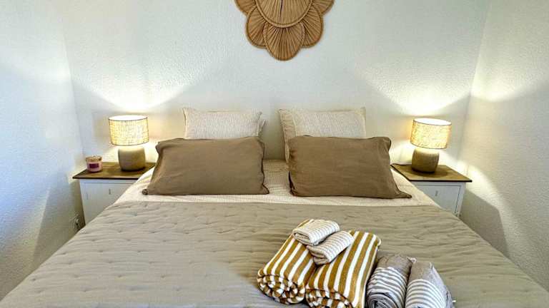 Das Ferienhaus bietet ein Schlafzimmer, ein Wohnzimmer und eine voll ausgestattete Küche mit Kühlschrank und Kaffeemaschine. Es verfügt über ein Badezimmer mit Dusche und kostenlosen Pflegeprodukten. Handtücher und Bettwäsche werden bereitgestellt. Weiterhin sind Klimaanlage und WLAN in allen Bereichen verfügbar.
