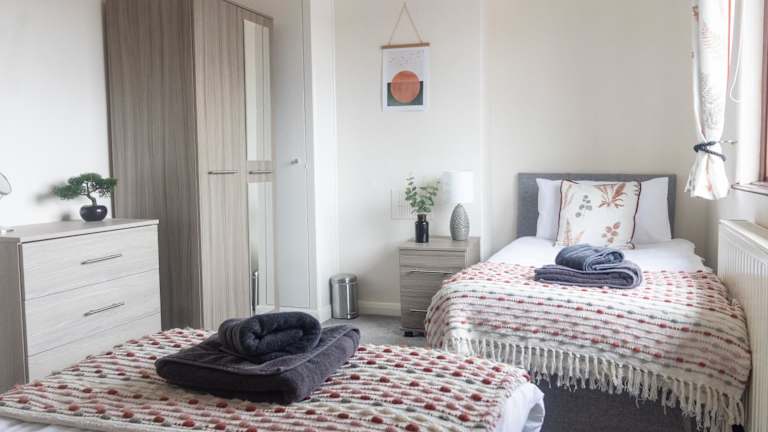 Adrian House, near Hospital, easy parking + garden bietet eine angenehme Unterkunft mit einer Veranda oder einem Patio sowie einem Garten. Kostenloses WLAN ist in der gesamten Unterkunft verfügbar.