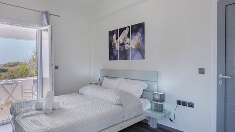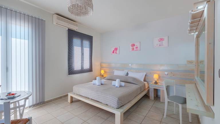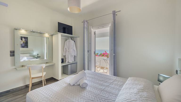 Die Zimmer und Suiten sind mit Klimaanlage, Heizung sowie einem eigenen Balkon oder einer Terrasse ausgestattet und bieten einen Blick auf das Meer. In jedem Zimmer stehen ein Kühlschrank, eine Kaffeemaschine und ein Wasserkocher bereit. Zur Ausstattung gehören zudem ein Safe, ein Flachbild-TV und ein modernes Badezimmer mit Dusche und Badewanne. Familienzimmer sind auf Anfrage verfügbar.
