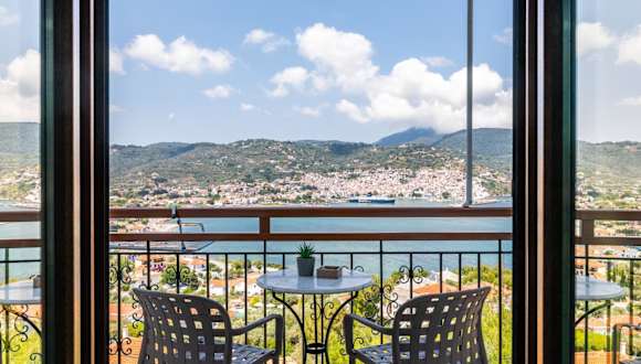 Das Aegeon Hotel liegt inmitten von Pinien und befindet sich direkt gegenüber dem charmanten Hauptort von Skopelos. Von hier aus haben Sie einen herrlichen Blick auf die Stadt und das Ägäische Meer. Der Strand ist nur etwa 1 km entfernt und die Talstation der Seilbahn von Skopelos erreichen Sie nach einem kurzen Spaziergang. In der Umgebung finden Sie auch Restaurants, Geschäfte und andere Unterhaltungsmöglichkeiten.