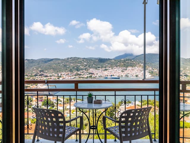 Die 15 Zimmer des Aegeon Hotels bieten Ihnen einen gemütlichen Rückzugsort mit einem eigenen Balkon, von dem aus Sie die malerische Aussicht auf die Stadt und das Meer genießen können. Die Zimmer verfügen über kostenfreies WLAN, einen Fernseher, Klimaanlage und einen Kühlschrank. Im eigenen Badezimmer finden Sie Pflegeprodukte und einen Haartrockner.