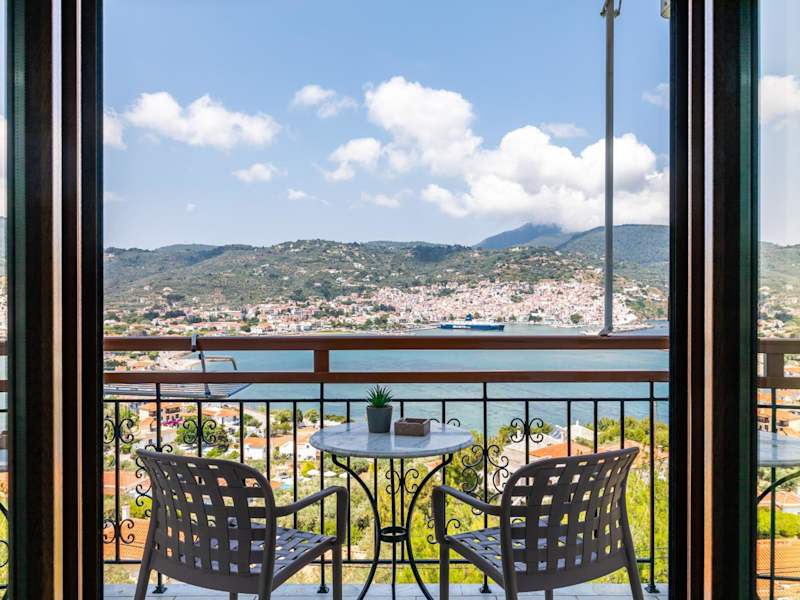 Das familiengeführte Aegeon Hotel auf Skopelos bietet eine ideale Lage direkt gegenüber dem charmanten Hauptort der Insel. Umgeben von Pinien und mit Blick auf die malerische Stadt und das Ägäische Meer, erwartet Sie hier eine entspannte Atmosphäre und ein erfrischender Pool. Die Zimmer sind komfortabel und verfügen über einen Balkon, von dem aus Sie die wunderschöne Aussicht genießen können. Starten Sie den Tag mit einem leckeren Frühstück im Speisesaal und entspannen Sie auf der Terrasse oder an der Bar. Das Hotel Aegeon ist nur 300 m vom Meer entfernt und bietet kostenfreie Parkplätze sowie einen Spielplatz für Kinder.