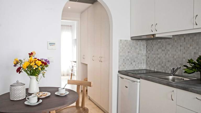 Da die Apartments über eine voll ausgestattete Küche verfügen, können Sie Ihre Mahlzeiten nach Belieben zubereiten. Es gibt jedoch auch eine Vielzahl von Restaurants in der Nähe, in denen Sie lokale Spezialitäten genießen können. Probieren Sie unbedingt die griechische Küche und lassen Sie sich von den köstlichen Aromen verführen.
