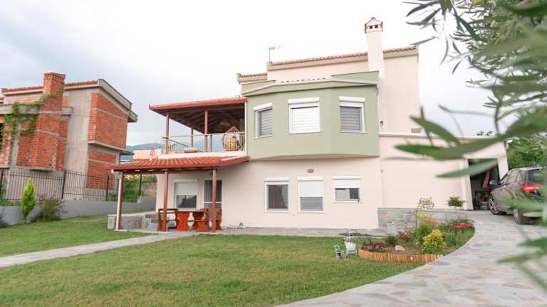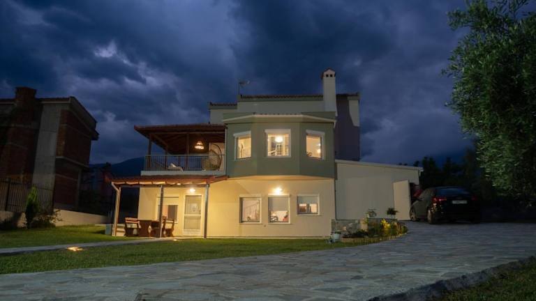 Die Aelia Villa Leptokarya bietet geräumige Unterkünfte mit 3 Schlafzimmern und 2 Badezimmern. Die Zimmer sind mit Bettwäsche und Handtüchern ausgestattet und verfügen über einen Flachbild-TV. Es gibt auch einen Essbereich und eine voll ausgestattete Küche, so dass Sie Ihre eigenen Mahlzeiten zubereiten können. Von der Terrasse aus haben Sie einen schönen Blick auf den Garten.