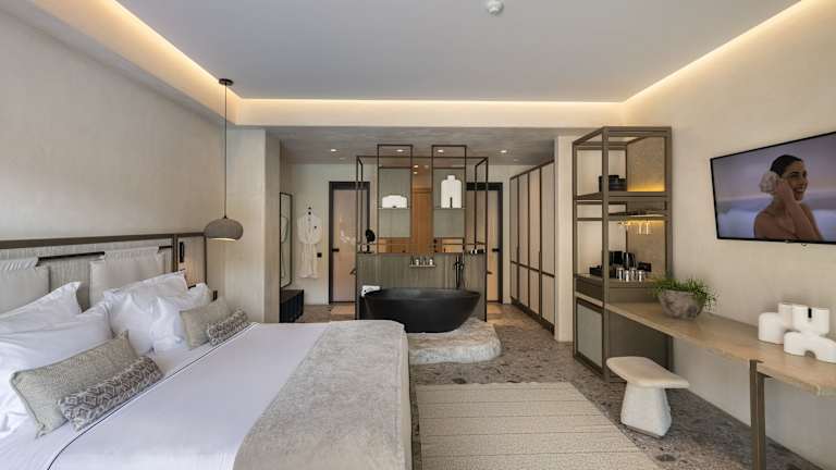 Die Zimmer im Aeonic Suites and Spa sind komfortabel und stilvoll eingerichtet und bieten Annehmlichkeiten wie einen Flachbild-TV, eine Minibar und eine Kaffeemaschine. Jedes Zimmer verfügt über ein eigenes Bad mit einer Dusche und einige Zimmer bieten einen Balkon oder Meerblick. Kostenloses WLAN ist in allen Zimmern verfügbar.