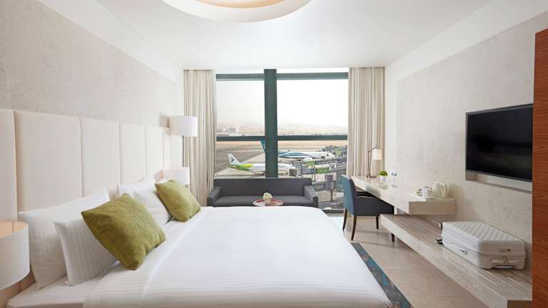 Die Zimmer im Aerotel Muscat sind komfortabel und sorgfältig gestaltet. Sie bieten den Gästen ein angenehmes Ambiente, um sich zu erfrischen, zu entspannen und zu erholen. Die Zimmer sind ideal für Paare oder Alleinreisende geeignet und bieten alle Annehmlichkeiten, die man von einem Transit-Hotel erwarten kann.