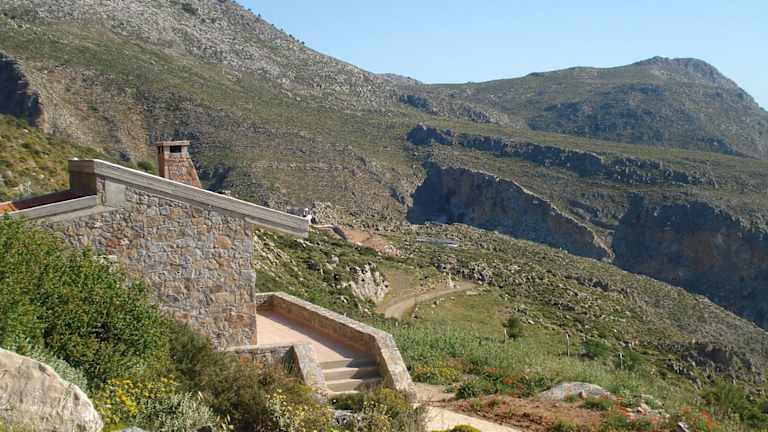 Das Aetovigla Guesthouse liegt in einer Höhe von 800 m an den östlichen Hängen des Psiloritis-Berges, etwa 25 km westlich von der Stadt Iraklio und nur 4 km vom historischen Dorf Kroussonas entfernt. Die Lage ermöglicht einen atemberaubenden Blick auf die umliegende Landschaft und bietet eine ruhige und naturnahe Umgebung.