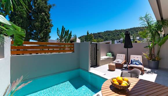 Die Afesou Suites sind mit einem saisonalen Außenpool ausgestattet. Kostenfreies WLAN sowie ein privater Parkplatz sind ebenfalls verfügbar. Die Unterkunft ist als Nichtraucherunterkunft konzipiert. Für Gäste sind sowohl Fahrrad- als auch Autovermietungen gegeben. Die Unterkunft richtet sich ausschließlich an Erwachsene.