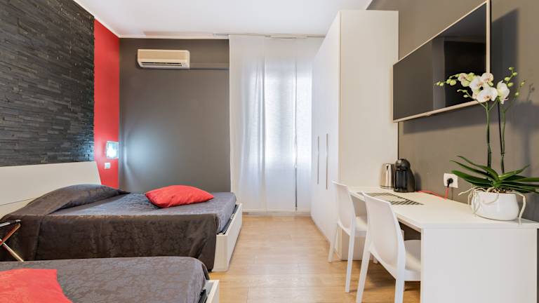 Die klimatisierten Zimmer im Affittacamere My Home bieten Ihnen Komfort und eine entspannte Atmosphäre. Jedes Zimmer verfügt über einen Schreibtisch, eine Kaffeemaschine, eine Minibar, einen Safe, einen Flachbild-TV und ein eigenes Bad mit Dusche. Einige Zimmer verfügen sogar über eine Küchenzeile mit Kochfeld, so dass Sie sich selbst verpflegen können. WLAN ist in allen Zimmern kostenlos verfügbar und ein Wasserkocher steht ebenfalls zur Verfügung.