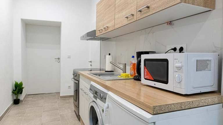 Das Apartment verfügt über ein Schlafzimmer und ist mit modernen Annehmlichkeiten ausgestattet, einschließlich einer Waschmaschine. Alle öffentlichen und privaten Bereiche der Unterkunft sind Nichtraucherzonen. Eine Rechnung kann auf Anfrage bereitgestellt werden.