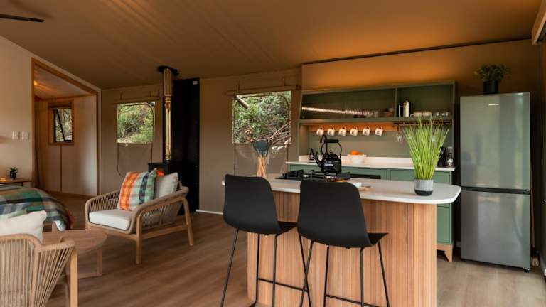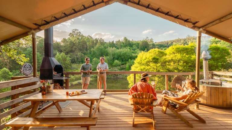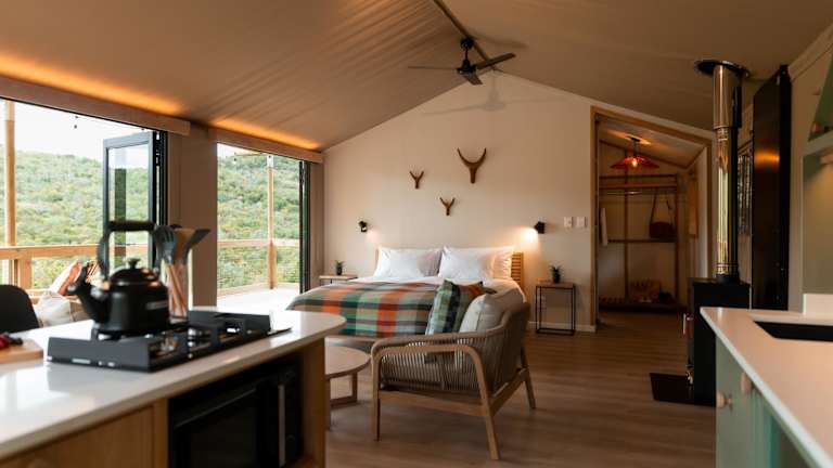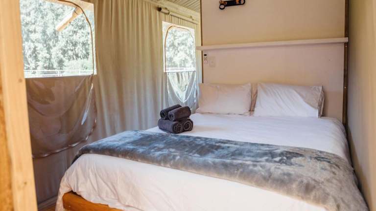 Die Unterkunft im AfriCamps Magoebaskloof besteht aus luxuriösen Zelten, die mit allen Annehmlichkeiten ausgestattet sind, um den Gästen einen komfortablen Aufenthalt zu bieten. Handtücher und Bettwäsche werden gestellt, und jedes Zelt verfügt über eine Terrasse mit Blick auf die umliegende Landschaft. Ein Highlight ist der Whirlpool, in dem die Gäste entspannen und die Aussicht genießen können.